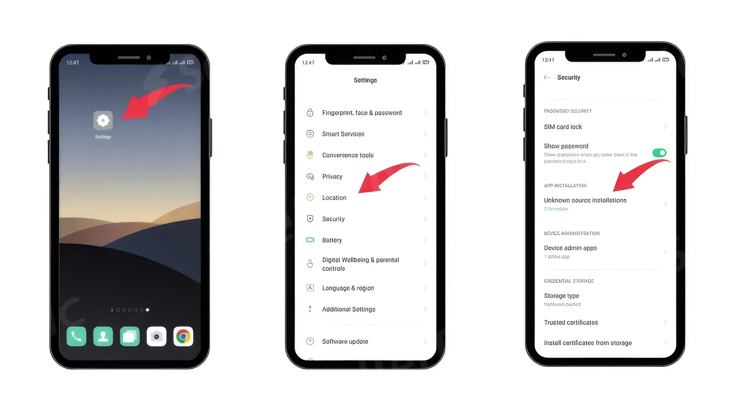 Step 3: Now go to your phone settings to enable the option of Allow Unknown Source. Setting > Security > Enable Unknown Source.